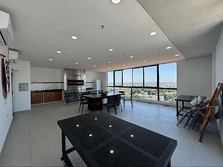 Departamento de 39m2 en el edificio Regina en barrio Herrera. Cuenta con 1 habitación con placard y con vistas verdes, 1 baño, sala comedor, cocina integrada. Estacionamiento para 1 vehículo. Todos los ambientes climatizados. AMENITIES: Lobby con guardia las 24hs. Piscina para adultos y piscina para niños. Quincho climatizado con parrilla. Terraza con deck y vistas despejadas. Gimnasio totalmente equipado. Transformador de gran volumen exclusivo del edificio. Doble sistema de tanques de agua para asegurar el suministro constante. Ascensor de última generación. Circuito cerrado de TV (C Precio alquiler: 4.200.000gs iva incluido AC: XV3Q0Z /CP: /