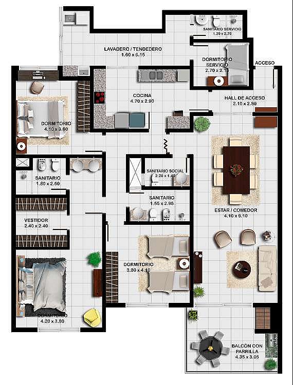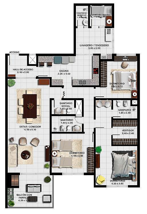 Departamento desde 190,88 m2 en Barrio Herrera, Asunción, Paraguay Departamento cuenta con 3 dormitorios (1 en suite y con vestidor), 1 baño familiar, 1 baño social, sala comedor, cocina, lavadero, área de servicio con dormitorio y baño, balcón con parrilla, estacionamiento para 1 vehículo, el departamento cuenta con Generador de energía. Amenities: portería las 24hs. Estacionamiento techado. Piscina / Deck. Circuito cerrado por seguridad. Área de juegos / gimnasio. Parrilla. Salón de eventos climatizado. Terraza. Precios desde USD 315.000 Las fotos son referenciales y los precios están sujetos a variación y disponibilidad A:TWPFDT / CP: 2398247 IF:BD8CE4